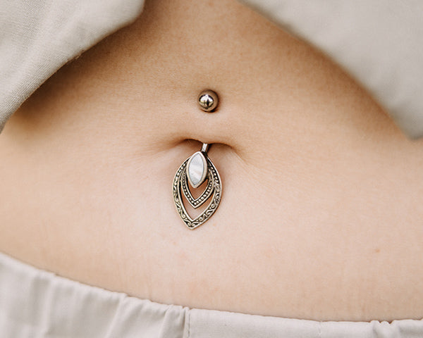 Um dich zu begleiten und zu beschützen haben wir zahlreiche Heilsteine wie Onyx, Quarz, Abalone und viele weitere in unsere boho Ketten und Bauchnabelpiercings eingearbeitet.
