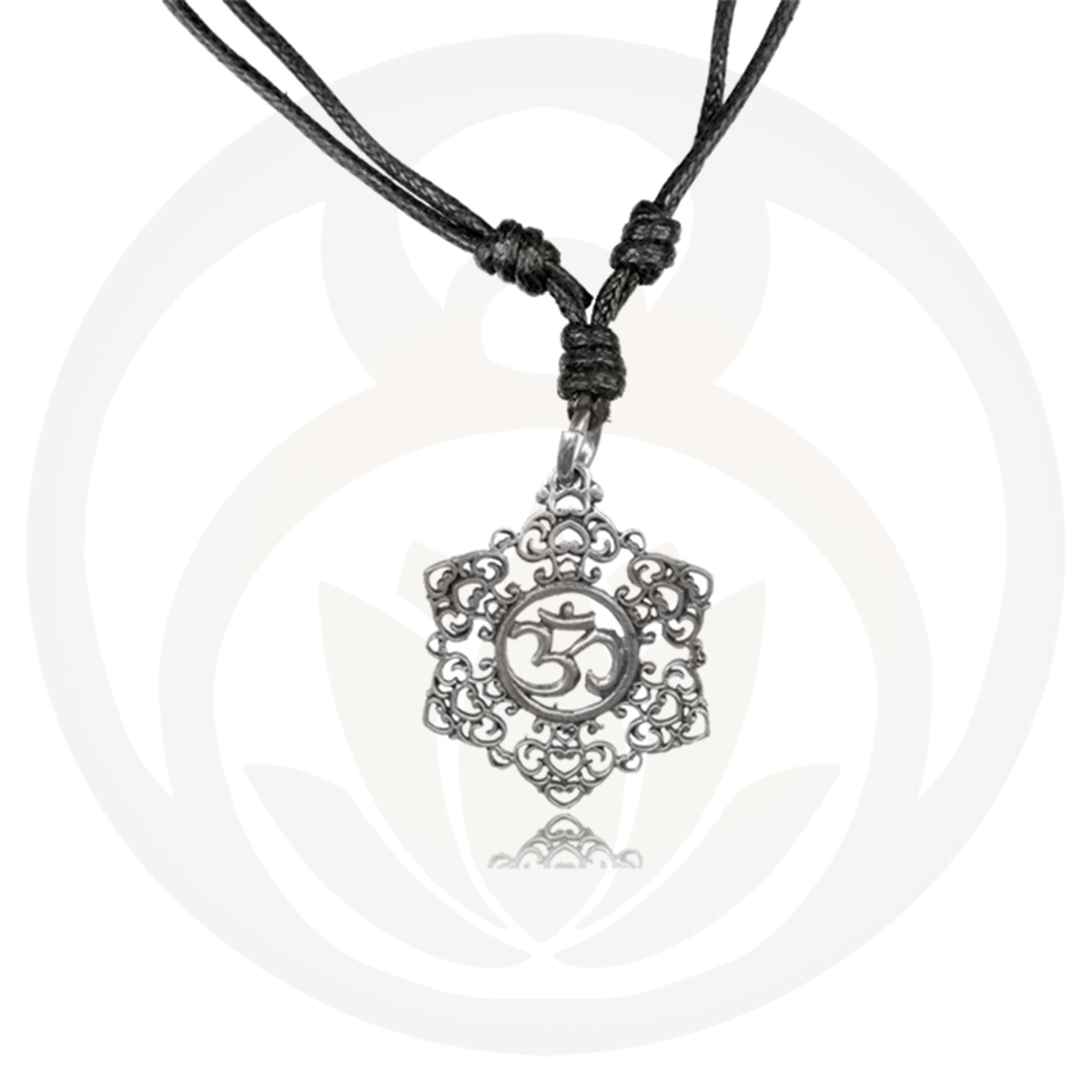 Halskette mit einem Aum Zeichen welches in einem Mandala eingefasst ist. Trage die Boho Kette alleine oder im Lagenlook mit anderen Ketten.