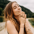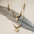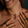 Handgeknüpfte Makramee Halskette von einer reisenden Handwerkerin. Wähle eine der beiden Ketten oder kombiniere sie miteinder. Du kannst sie durch einen verstellbaren Verschluss auf verschiedenen Höhen anbringen. Die Halskette Gede mit einem Sonnen-Anhänger und die Halskette Anom mit einem spitz zulaufenden Anhänger. Diese einzigartigen Ketten bringen eine filigrane Ästhetik mit sich und umhüllen dich mit dem Zauber von handgemachten Schmuckstücken.