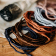 Handgefärbte Seidenbänder die du als Halskette oder um dein Handgelenk tragen kannst. Unsere Kettenanhänger passen perfekt zu den Seidenbändern. Wähle zwischen fünf verschiedenen Farben.