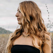 Statement Halskette mit Steinsplitern aus Tigerauge und Messinganhängern, handgemacht von der Shopinhaberin Lisa. Du kannst sie durch einen verstellbaren Verschluss auf verschiedenen Höhen anbringen. Diese einzigartigen Ketten bringen eine filigrane Ästhetik mit sich und umhüllen dich mit dem Zauber von handgemachten Schmuckstücken.