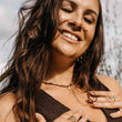Halskette mit schmalen Jaspisperlen und einem Messinganhängern, handgemacht von der Shopinhaberin Lisa. Du kannst sie durch einen verstellbaren Verschluss auf verschiedenen Höhen anbringen, auch als Choker tragbar. Diese einzigartigen Ketten bringen eine filigrane Boho-Ästhetik mit sich und umhüllen dich mit dem Zauber von handgemachten Schmuckstücken.