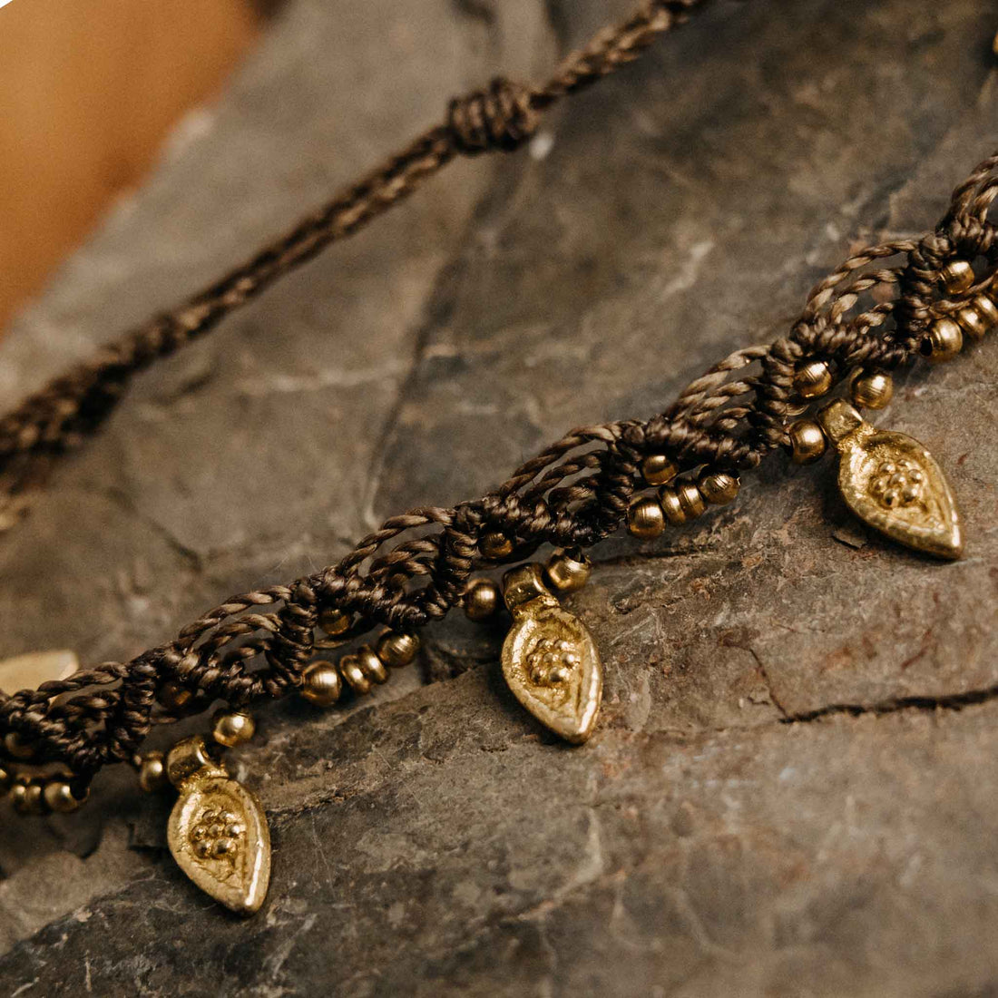 Dieses Fußkettchen verkörpert den free spirit des Boho-Stils – schlicht, natürlich und mit liebevollen Details....