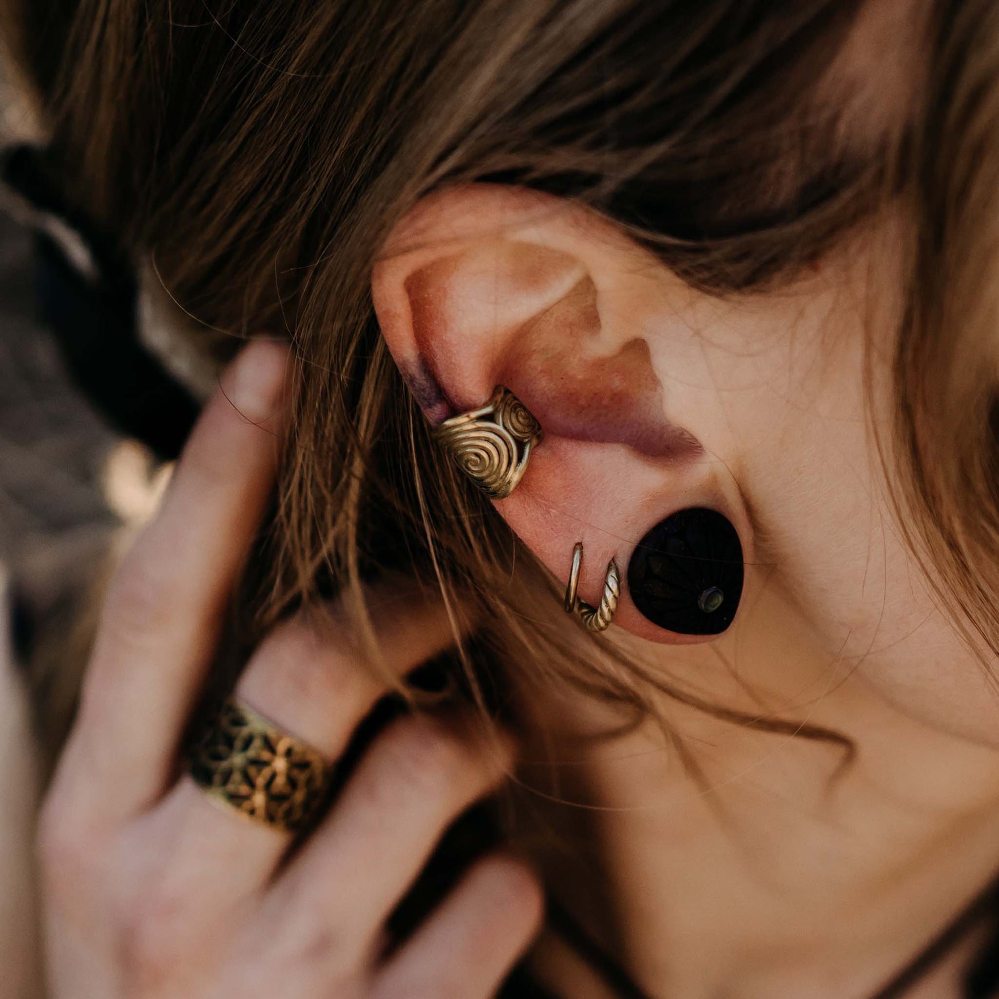 Klemme diesen besonderen Earcuff mit filigran gearbeiteten Spiralen auf beliebiger Höhe an dein Ohr.