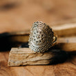 Trage deinen persönlichen Talisman ganz nah bei dir. Filigran gearbeiteter Boho Fingerring mit einem Mandala.