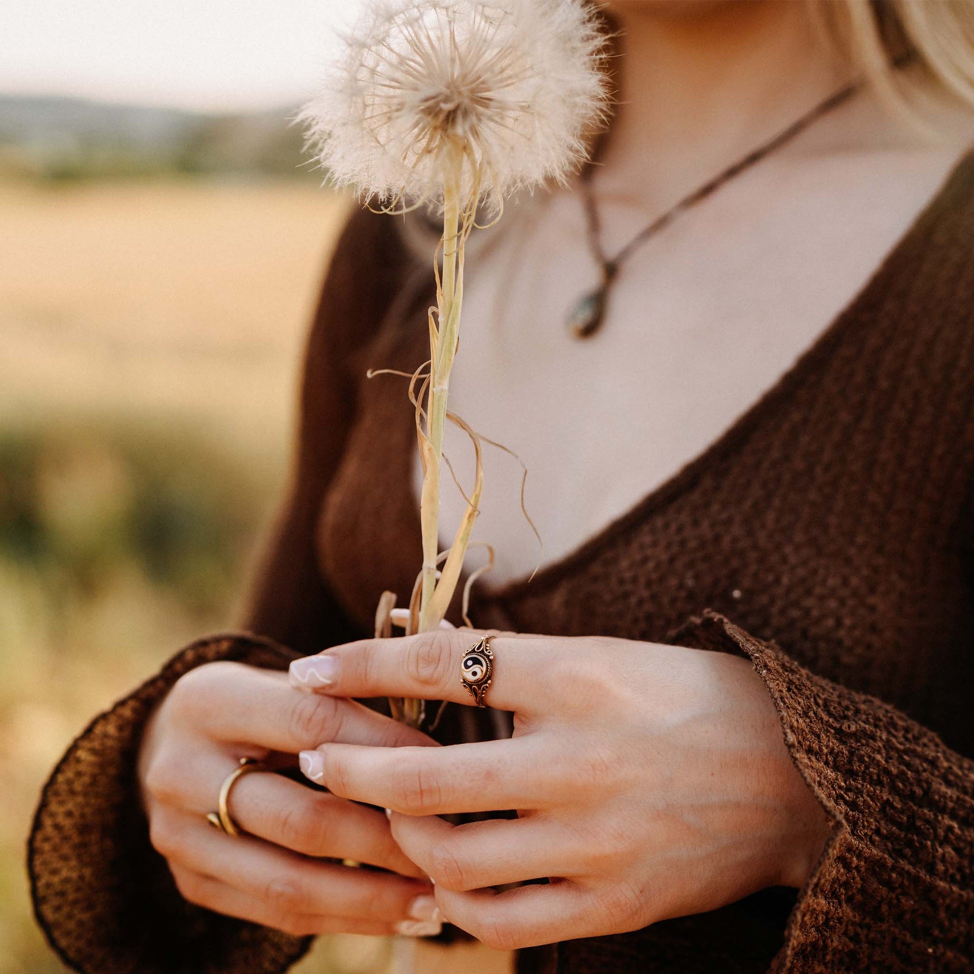 Liebevoll gefertigter Ring mit dem Yin Yang Zeichen. Er lässt sich wunderbar im Lagenlook mit unseren anderen Ringen kombinieren. Diesen Ring gibt es in verschiedenen Größen.