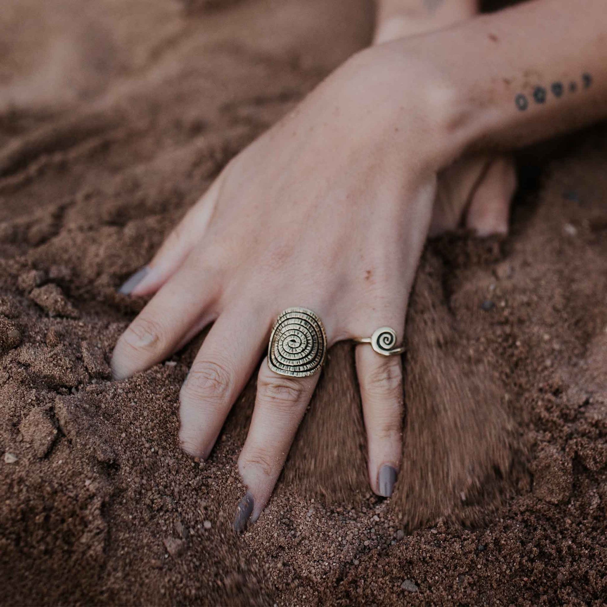 Offener, größenverstellbarer Hippie Fingerring. Das Messing ist butterweich und lässt sich super gut in die passende Form bringen.