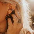Dieser Boho Statement-Fingerring sorgt für einen Hingucker an deiner Hand. Trage ihn alleine oder kombiniere ihn mit kleineren Ringen im Lagenlook.