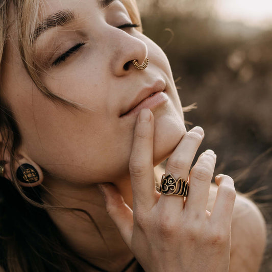 Schmücke deine Finger mit großen und kleinen Messingringen mit Spiralen, dem Lebensbaum, Goa Zeichen, der Blume des Lebens, heiliger Geometrie und vielem mehr.