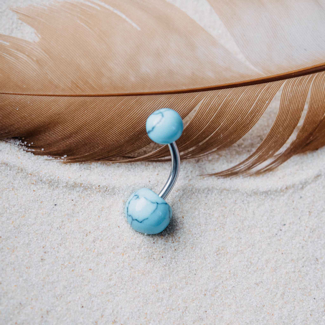 Nature-inspired belly button jewelry with two turquoise beads. Both balls are removable. If you need...