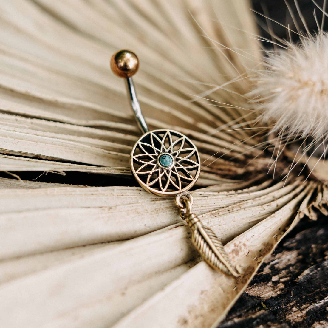Here you will find unique handmade boho belly button piercings with shells, dream catchers, teardrops, mandala, lotus blossoms, flower of life and much more.