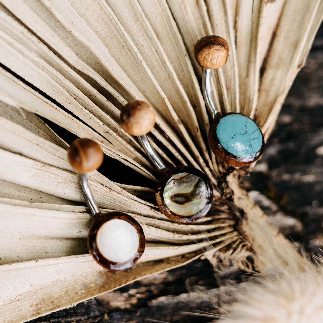 Wooden belly button jewelry inspired by nature with an incorporated healing stone. You can also...