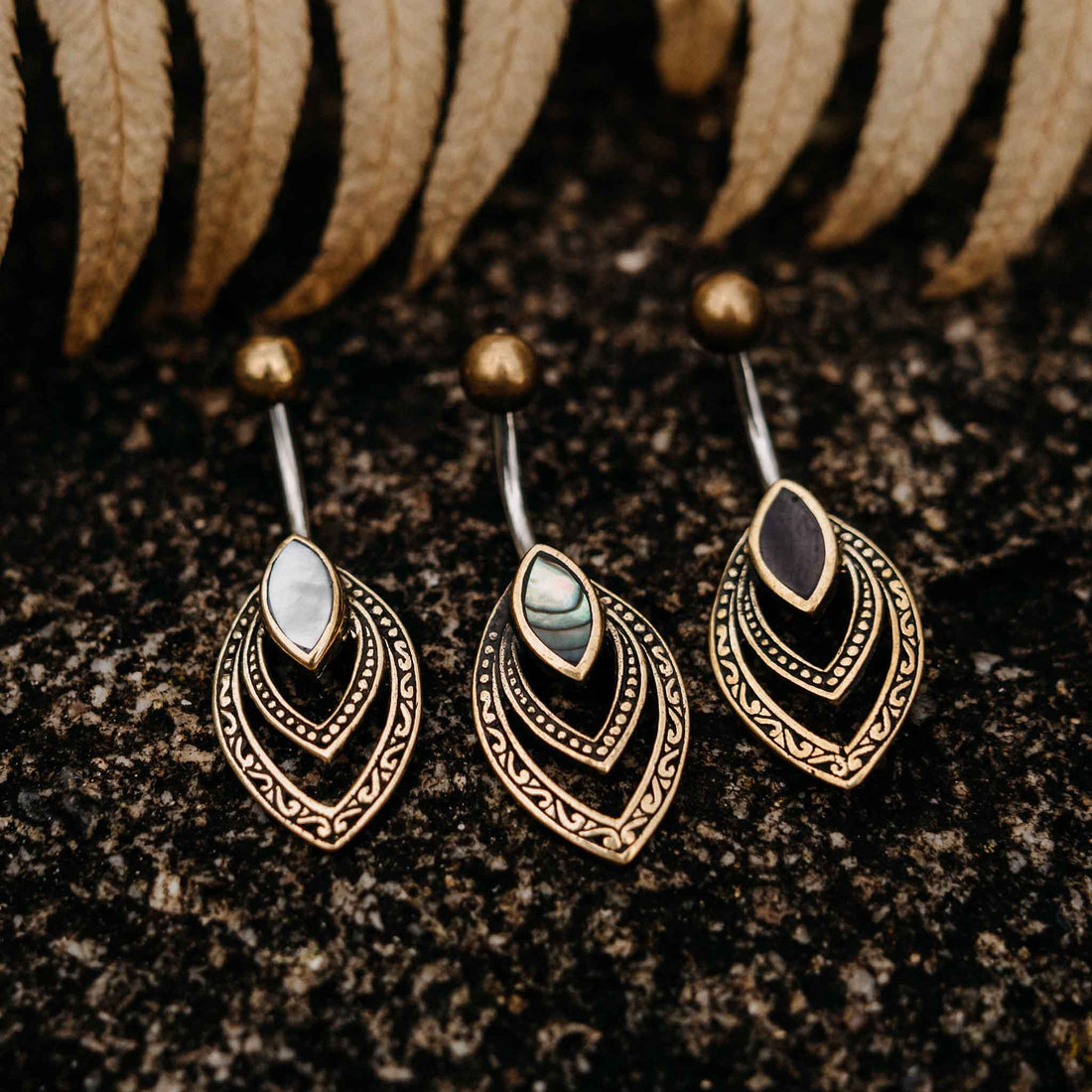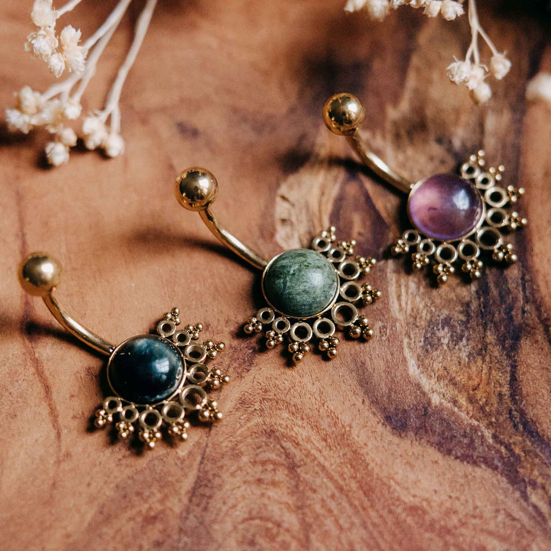 Many of our belly button piercings are adorned with healing stones such as Abalone, Jasper, Onyx, Mother of Pearl, Shiva Eye and Jade to guide and protect you on your journey.