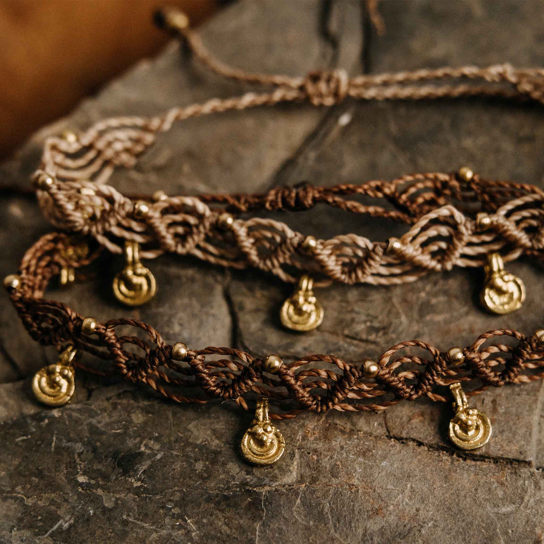 Discover the selection of handmade anklets with healing stones, bells and brass beads.