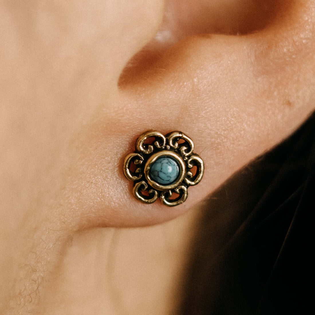 Handmade small stud earrings with the flower of life, the sacred mandala, the oriental mandala, the golden wheel, the tree of life and healing stones such as turquoise and onyx. Our gold stud earrings with stones are particularly unique!