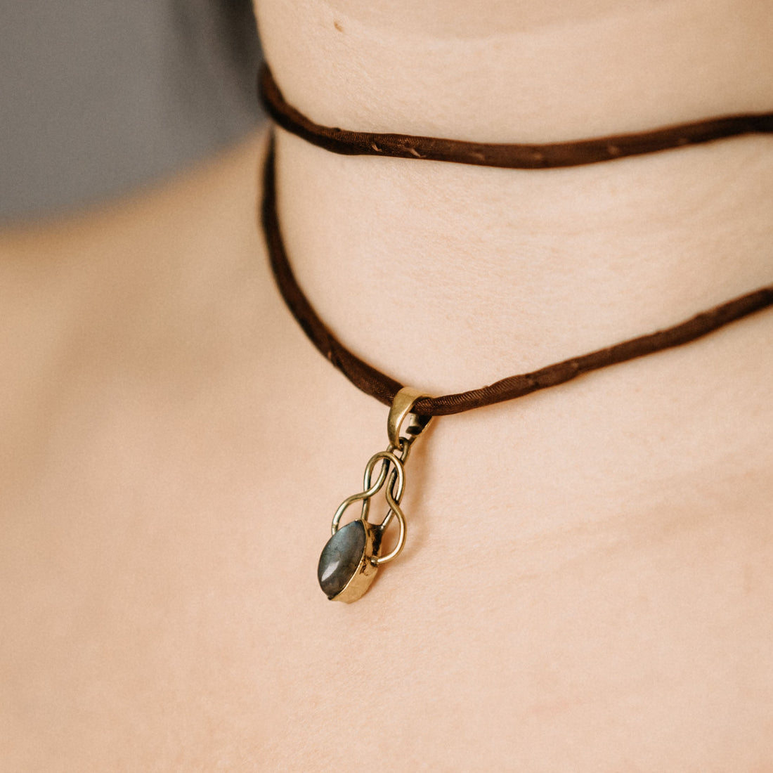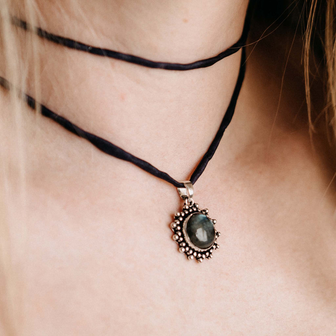 Necklace pendant with a labradorite stone. This necklace pendant pairs perfectly with our hand-dyed silk...