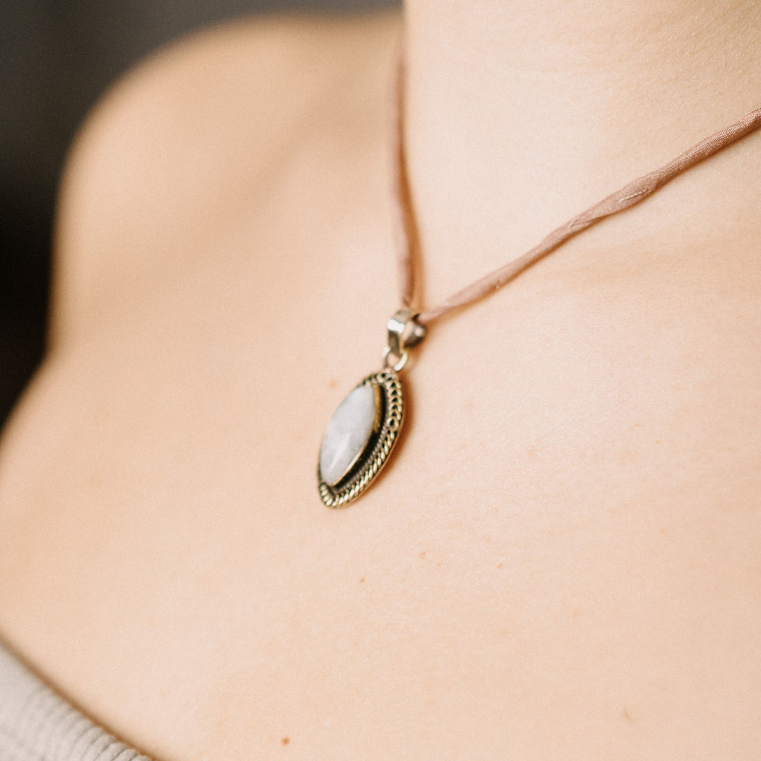 Necklace pendant with a set moonstone. This necklace pendant pairs perfectly with our hand-dyed silk...