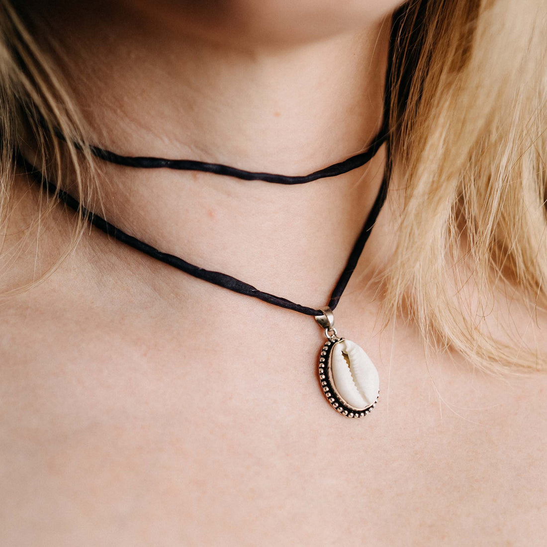 Necklace pendant with a set cowrie shell. This necklace pendant pairs perfectly with our hand-dyed...