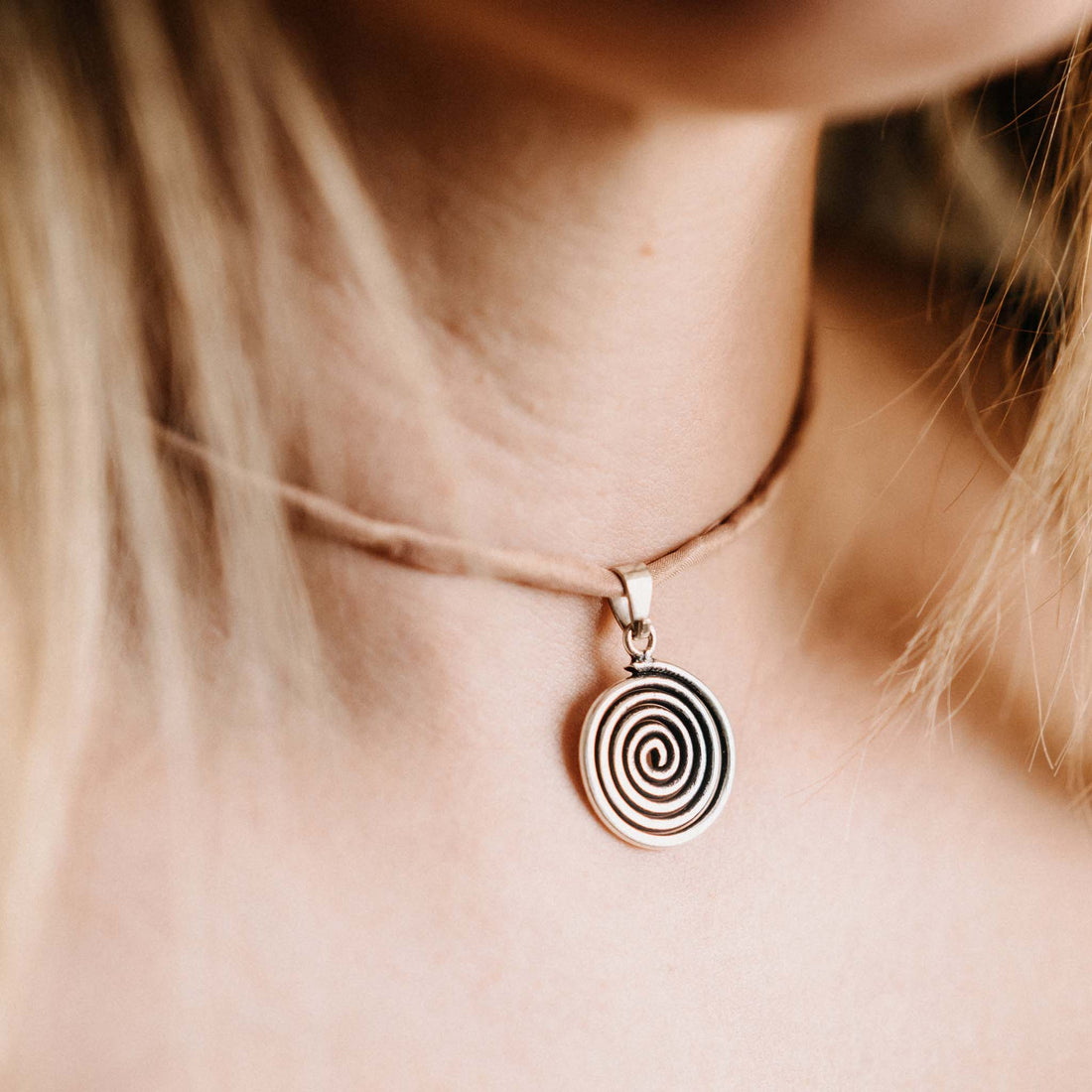 Necklace pendant in the shape of a spiral. In spirituality, the spiral symbolizes the path...