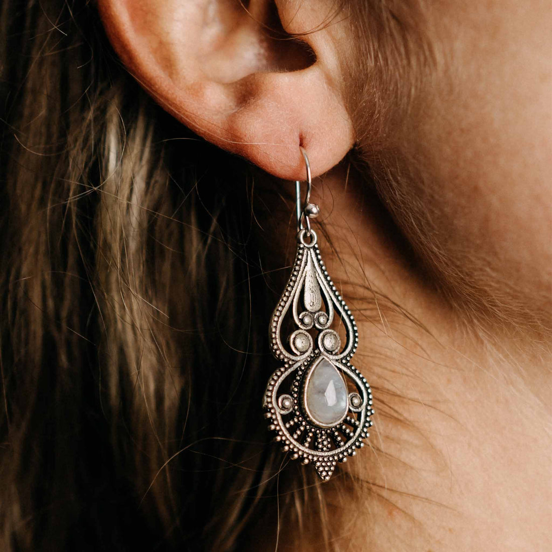 Our brass earrings are available in various shapes such as creoles, mandala or with healing stones such as rock crystal .