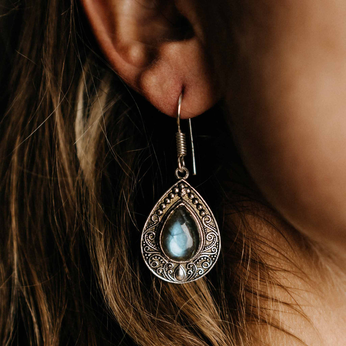 Swati Labradorite Gold/Silver Earrings