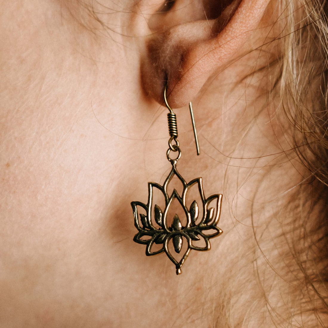 Decorate yourself with these magical lotus earrings. All earrings come in pairs. Material: Brass Hypoallergenic:...