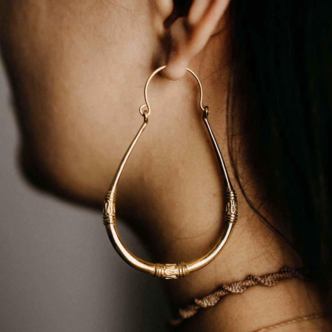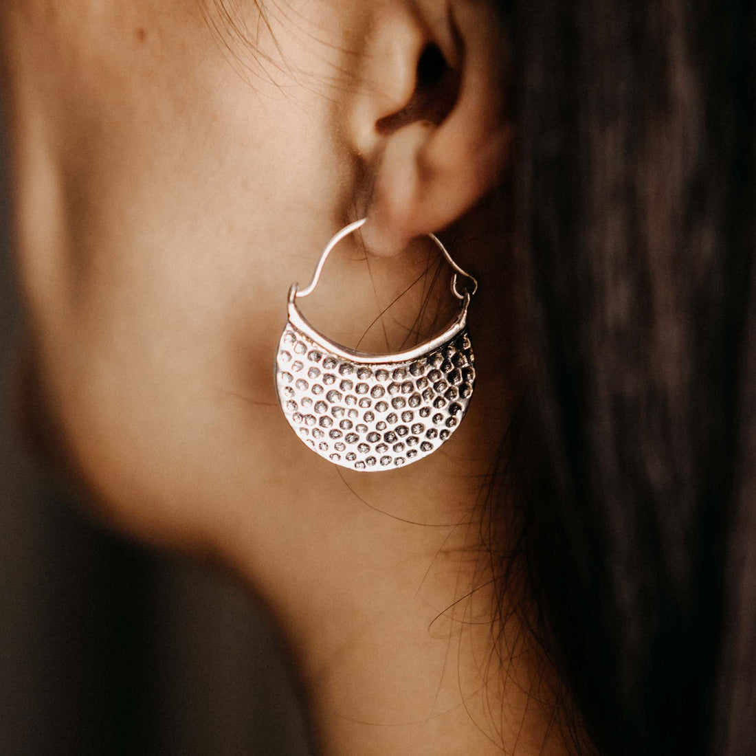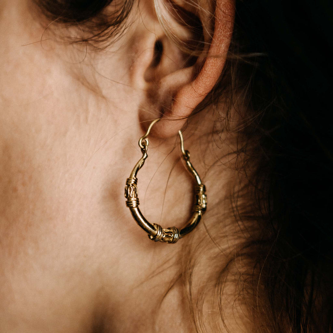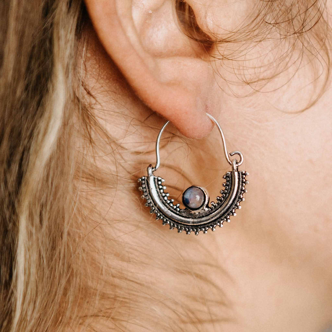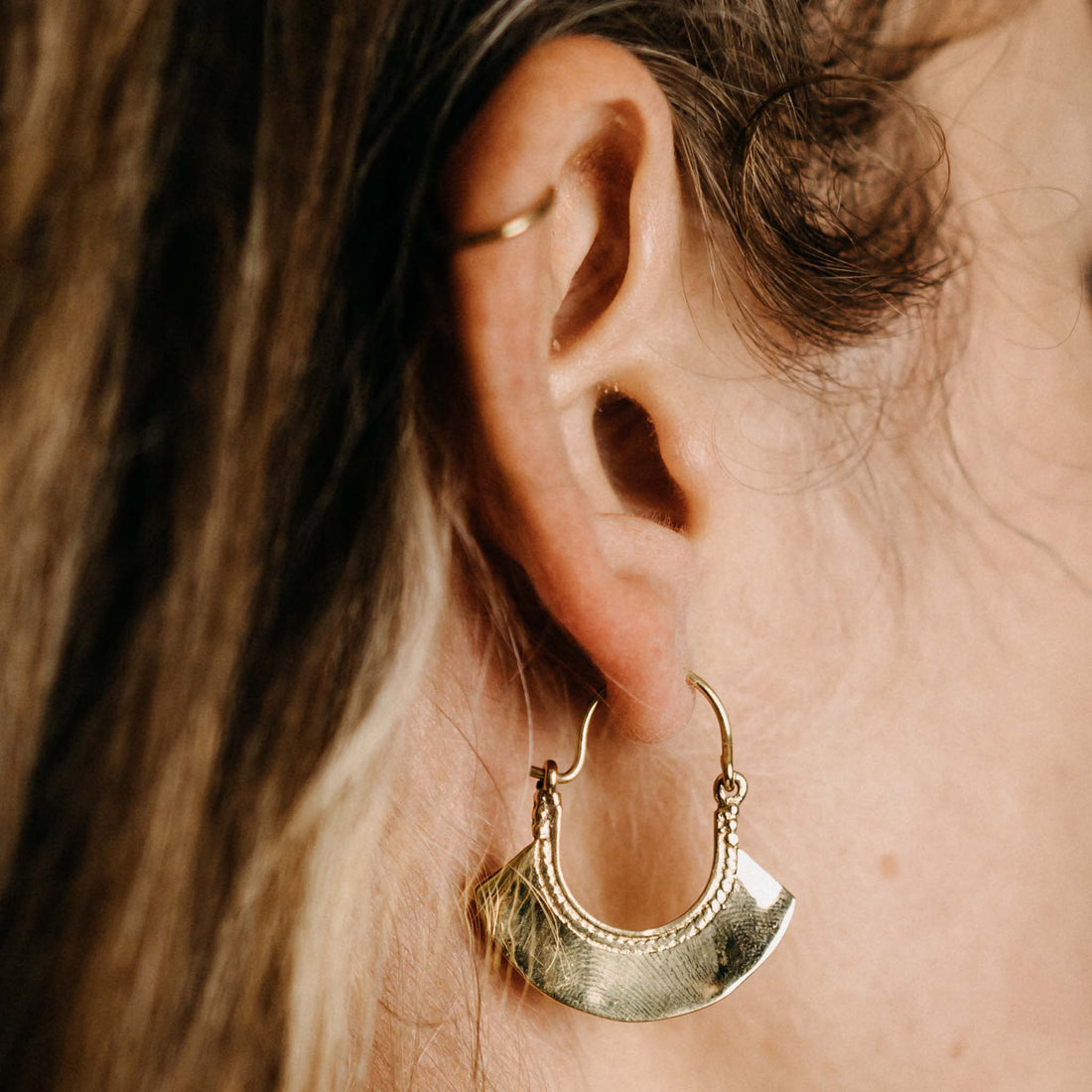 Our brass earrings are available in various shapes such as creoles, mandala or with healing stones such as rock crystal .