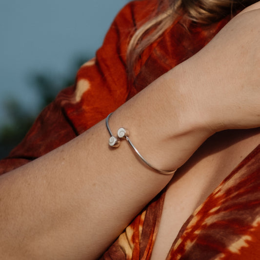 A unique bracelet with cowrie shells. Choose between gold and silver. The material is bendable,...