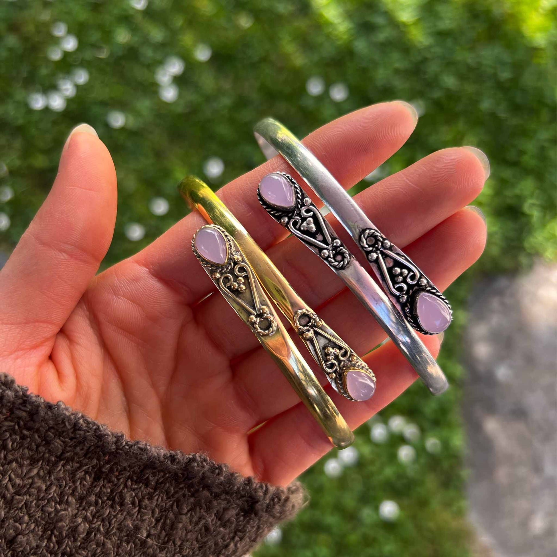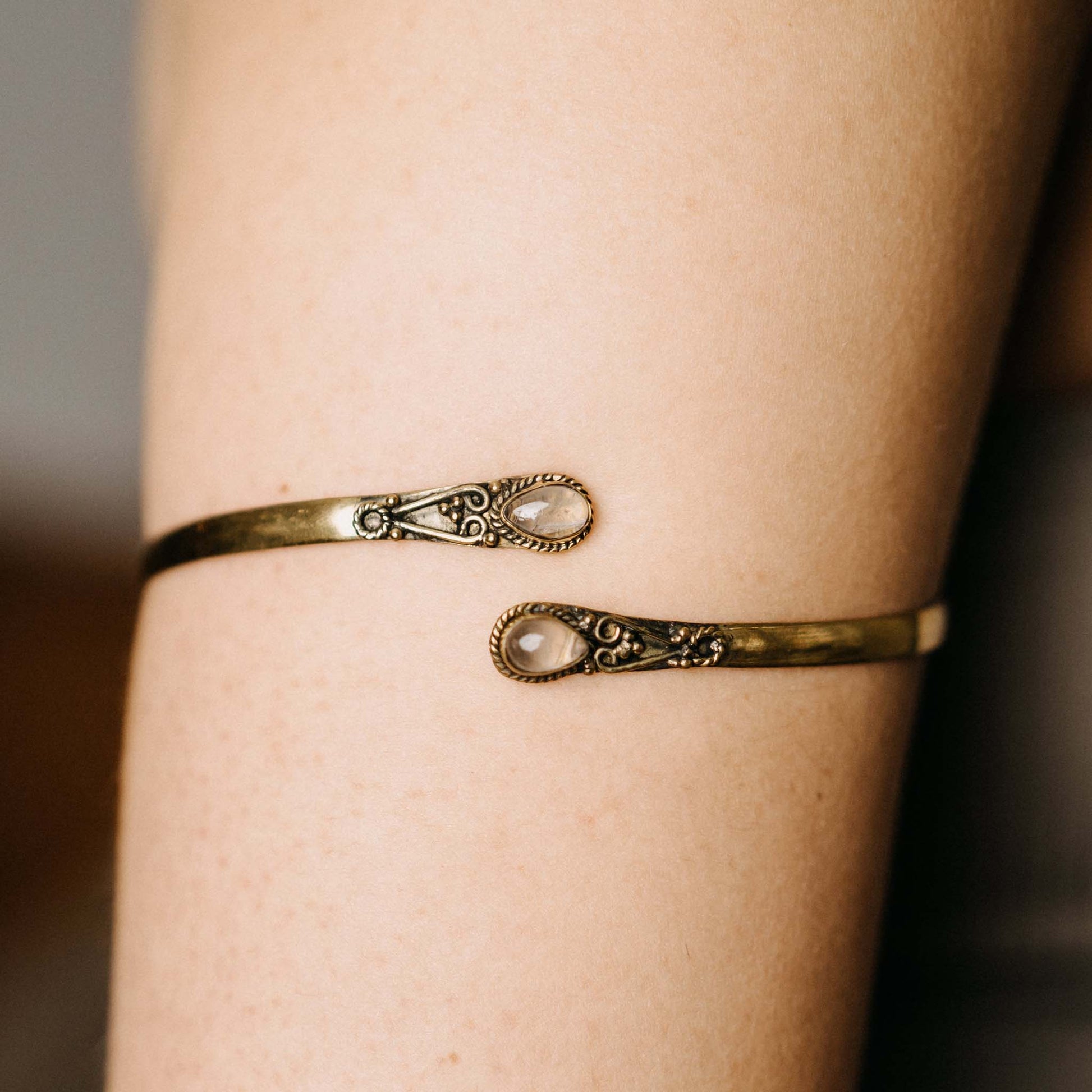 Handmade upper arm cuff with rose quartz . Choose between silver and gold. You can adjust the cuff to your individual body shape; it can be easily bent into shape.
