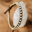 Anklet with white turquoise and brass beads. A bell is attached to the end of the chain.