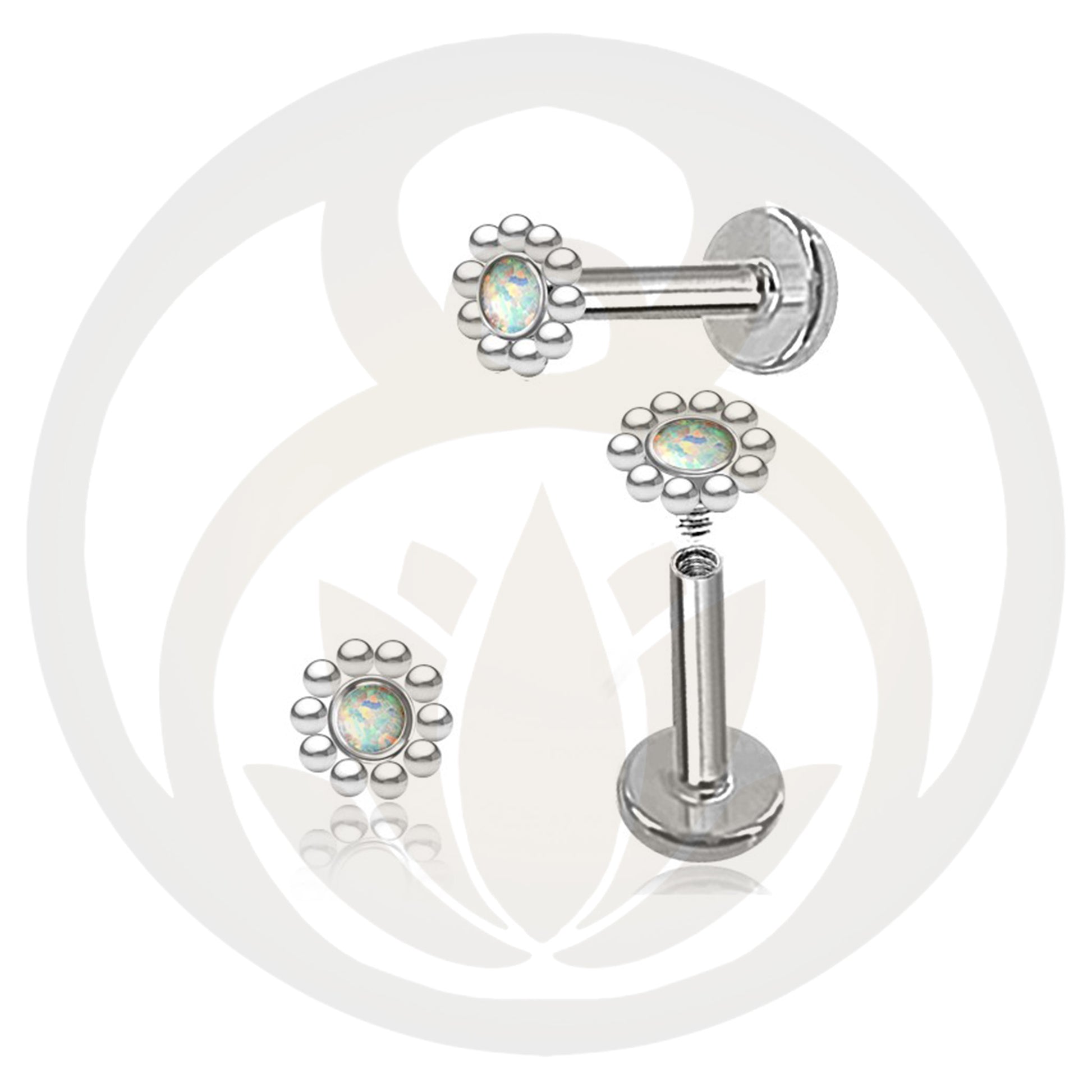 Labret piercing with a screw thread. You can wear this piercing in the ear, for example, as a helix or tragus, or in the lip, for example, as a Medusa piercing.