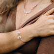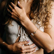 Besonderer Armschmuck mit eingearbeiteten rohen Bergkristallen. Das Material lässt sich biegen, sodass du ihn einfach an und aus bekommst.