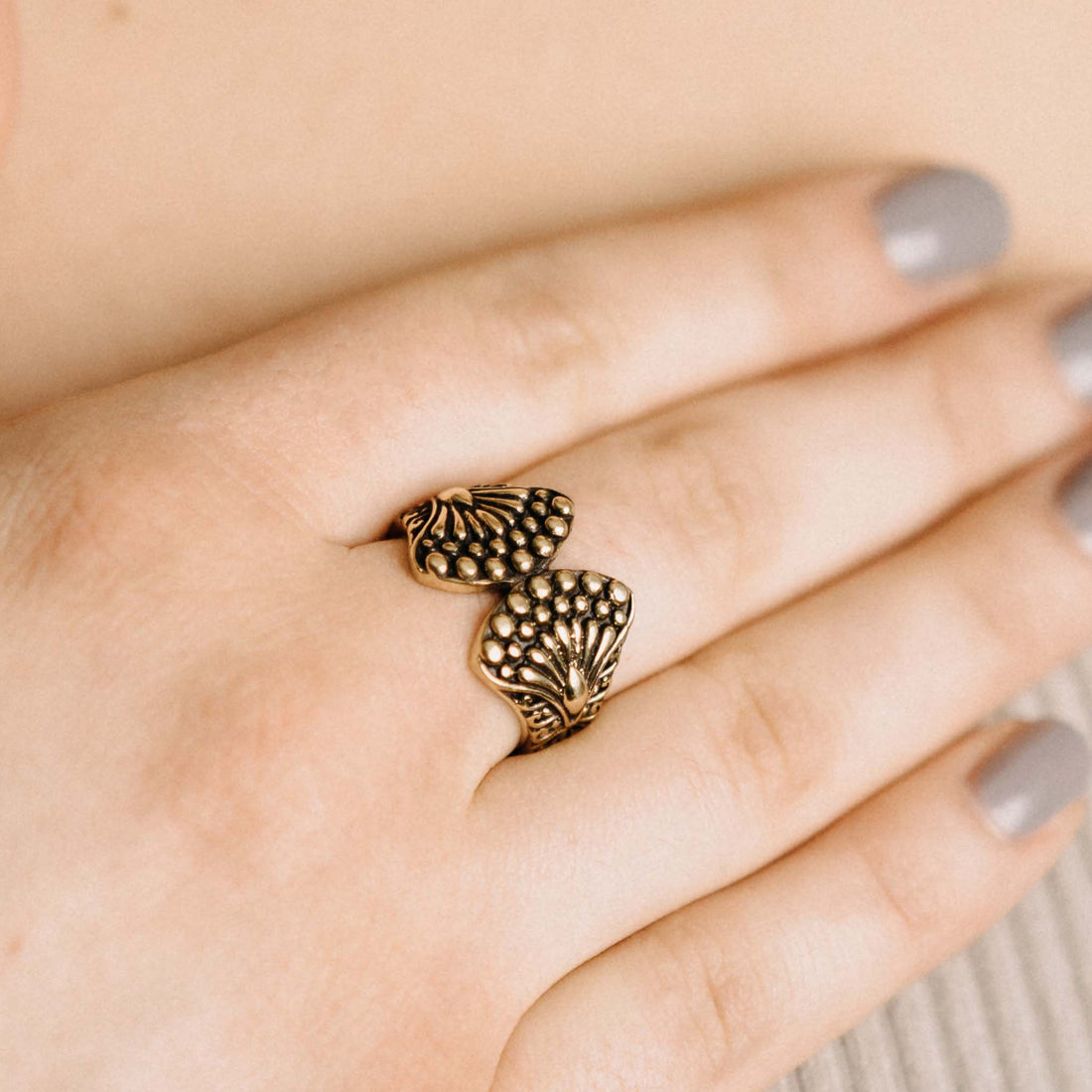 Adorne sus dedos con anillos de latón grandes y pequeños con espirales, el árbol de la vida, los signos de Goa, la flor de la vida, la geometría sagrada y mucho más.
