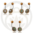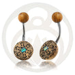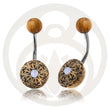 Piercing de ombligo de madera inspirado en la naturaleza. Cada pieza de joyería tiene una piedra curativa integrada y un mandala individual.
