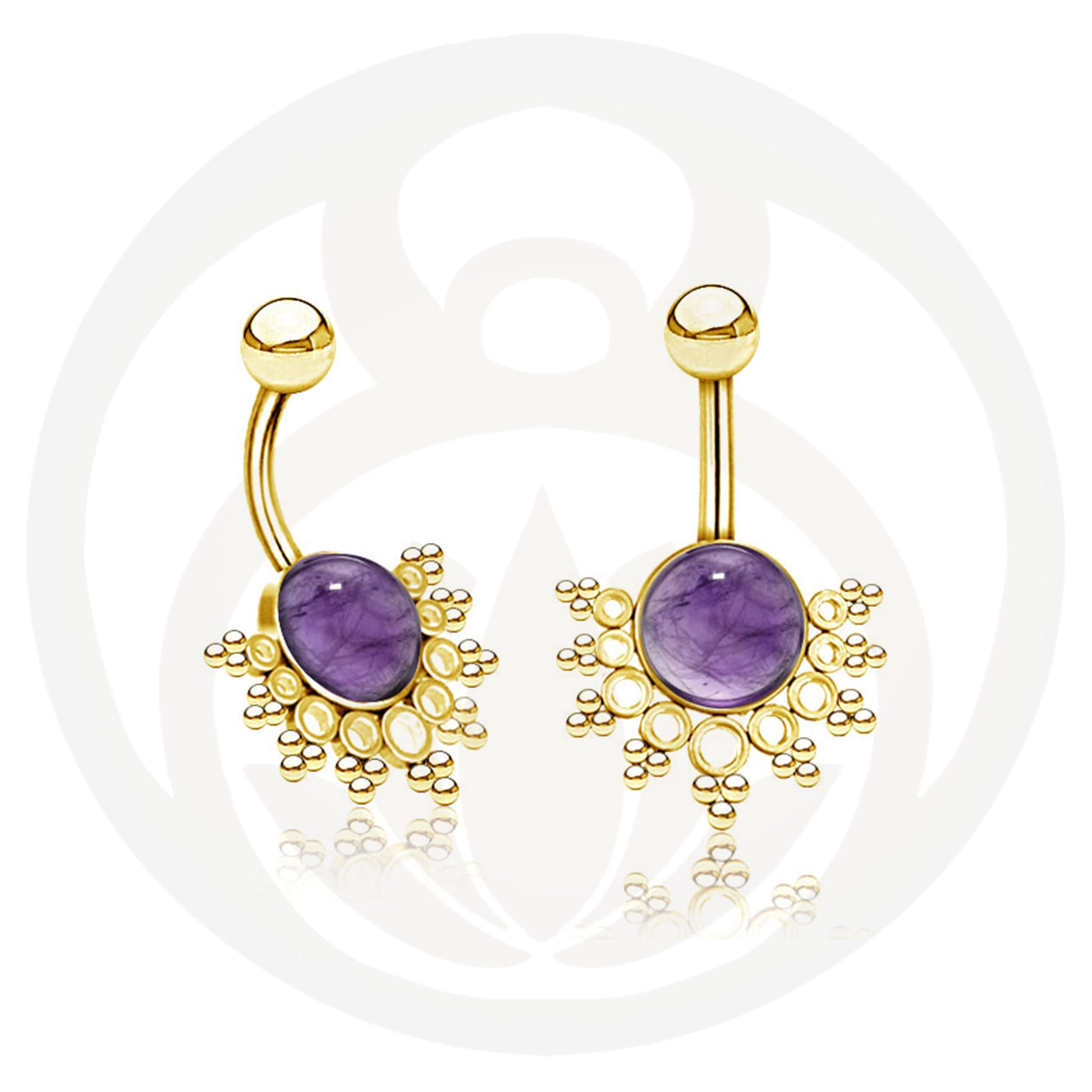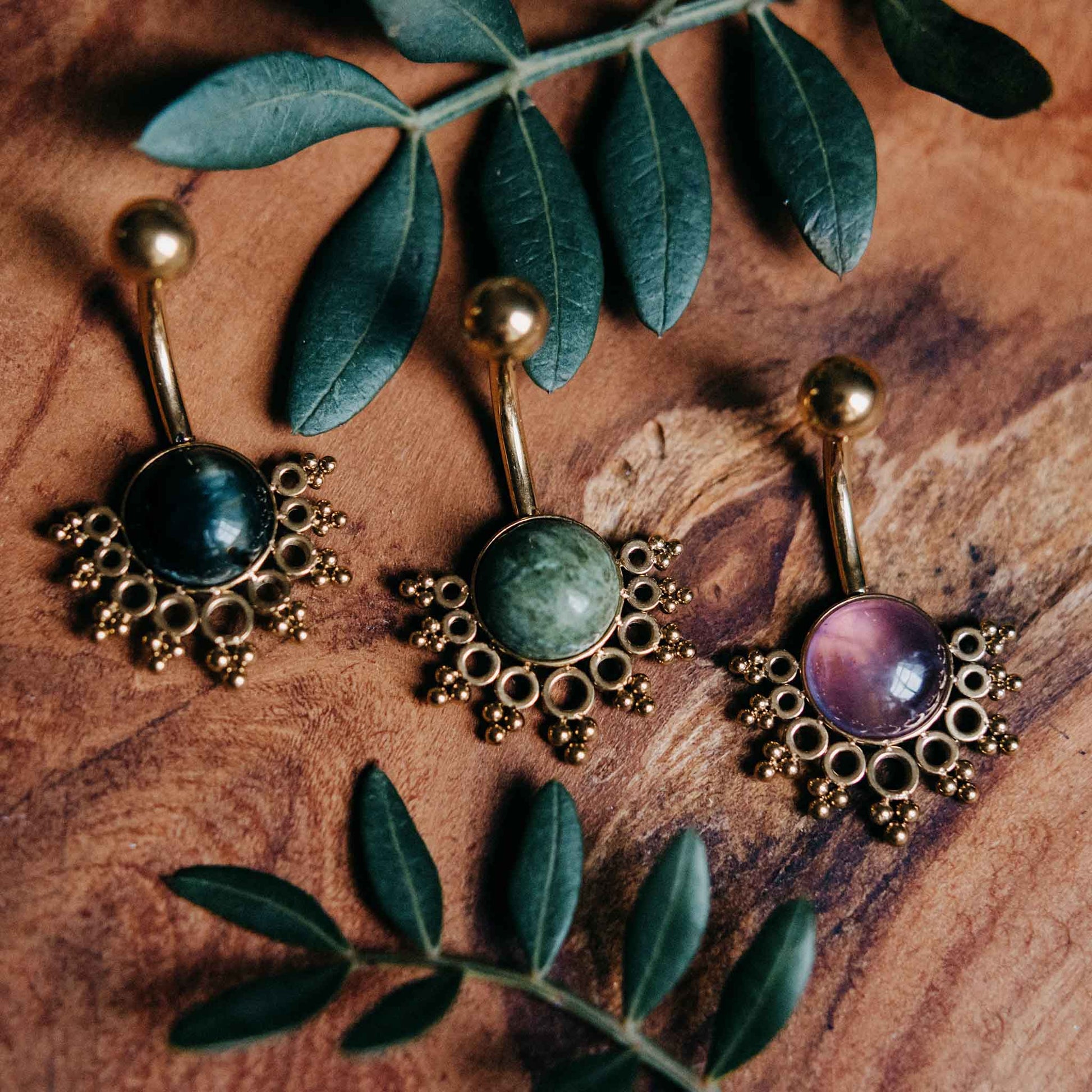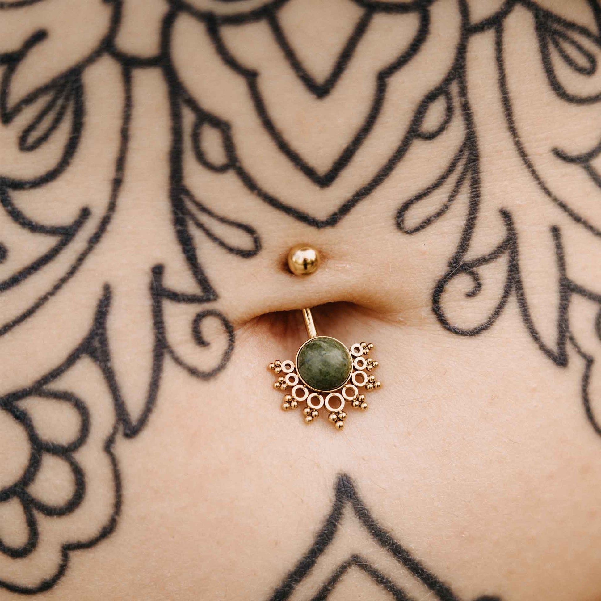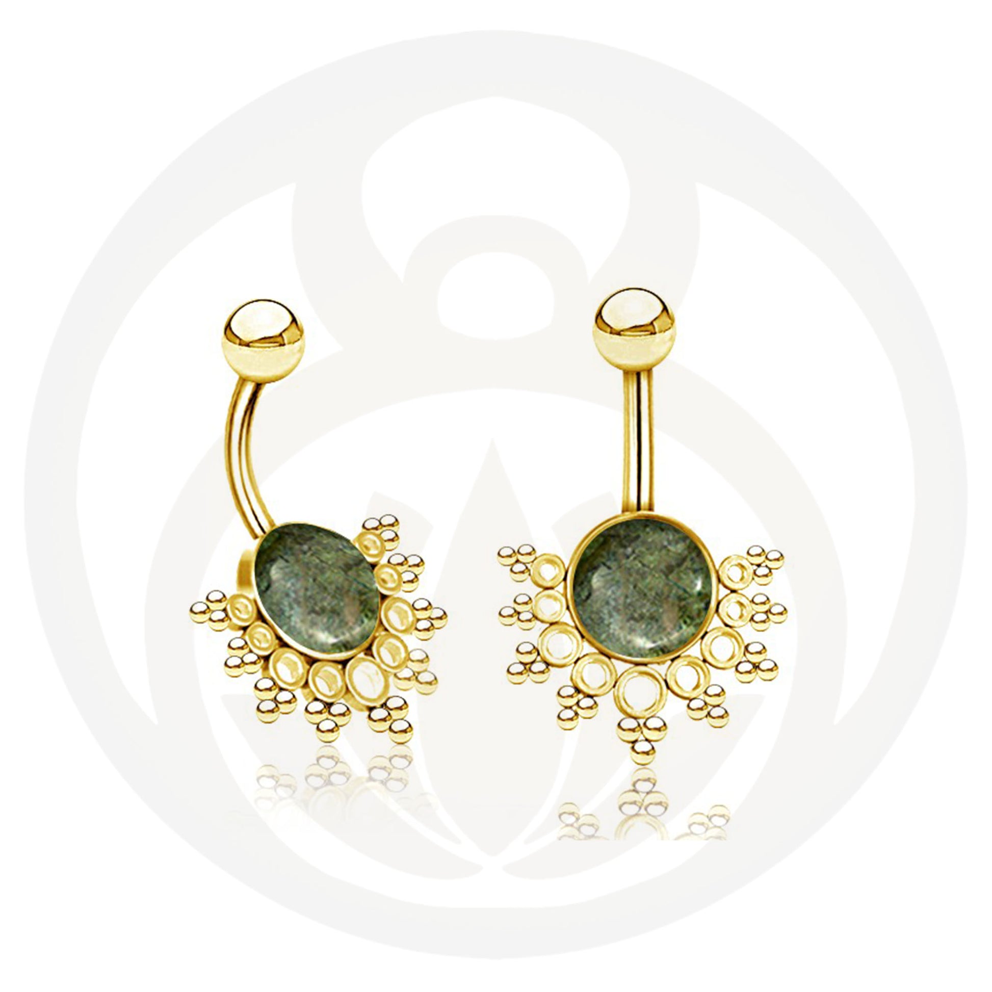 Einzigartiges Bauchnabelpiercing mit einem Mandala welches einen Stein hält. Lass dich von dem Heilstein deiner Wahl täglich begleiten und beschützen auf deinen bevorstehenden Abendteuern. Wähle hier zwischen 3 verschiedenen Varianten.