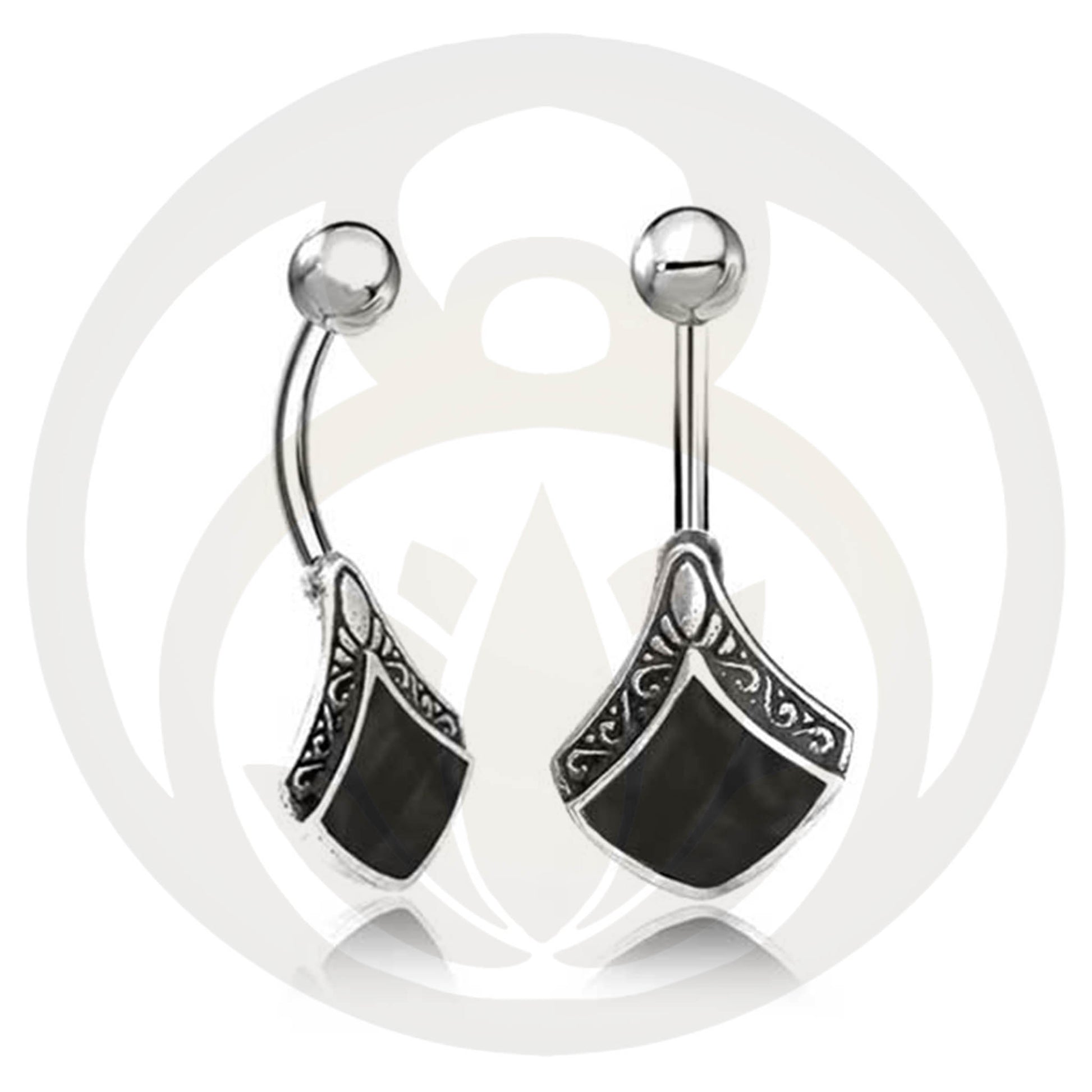 Piercing de ombligo inusual con una piedra curativa engastada en un mandala con patrones celtas.
