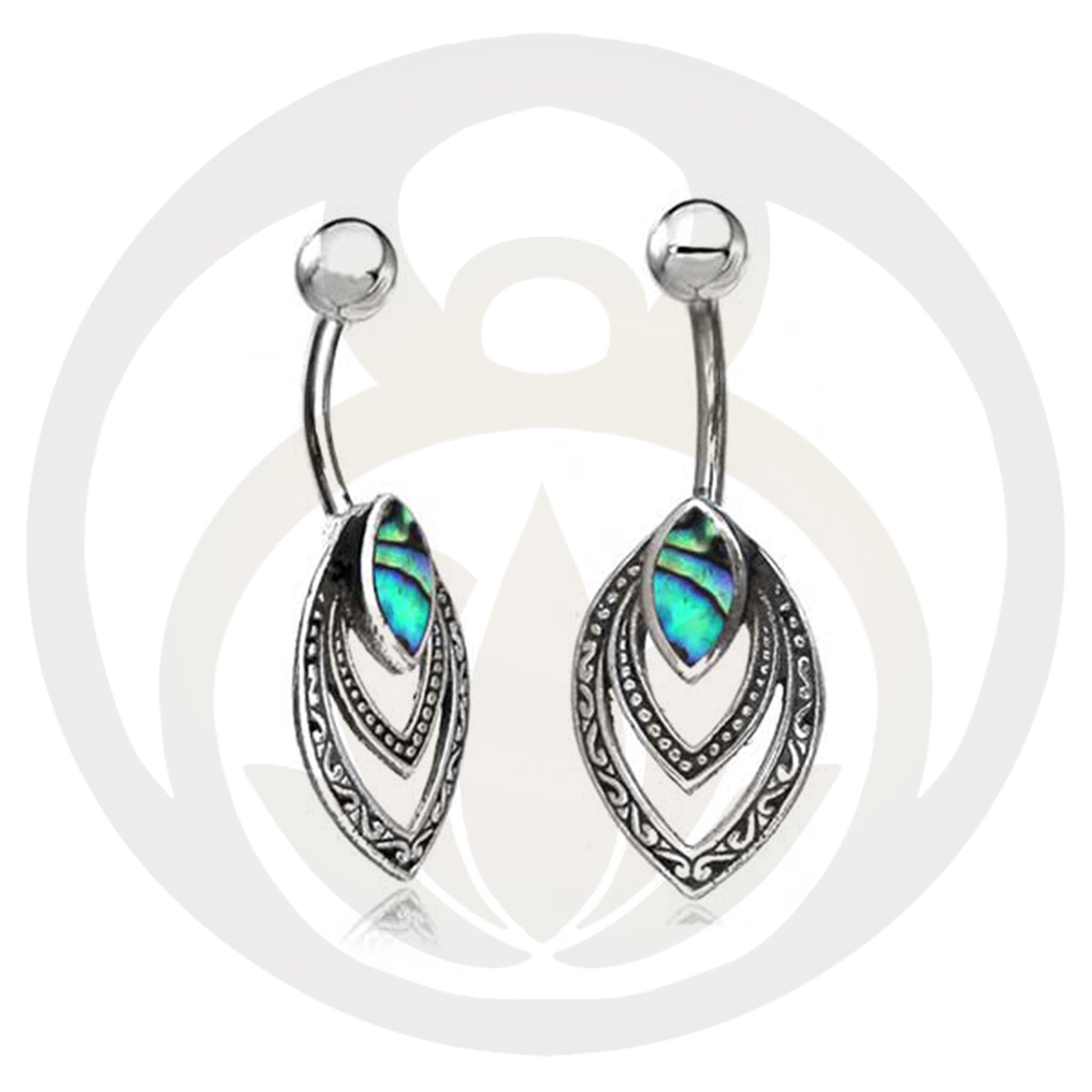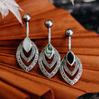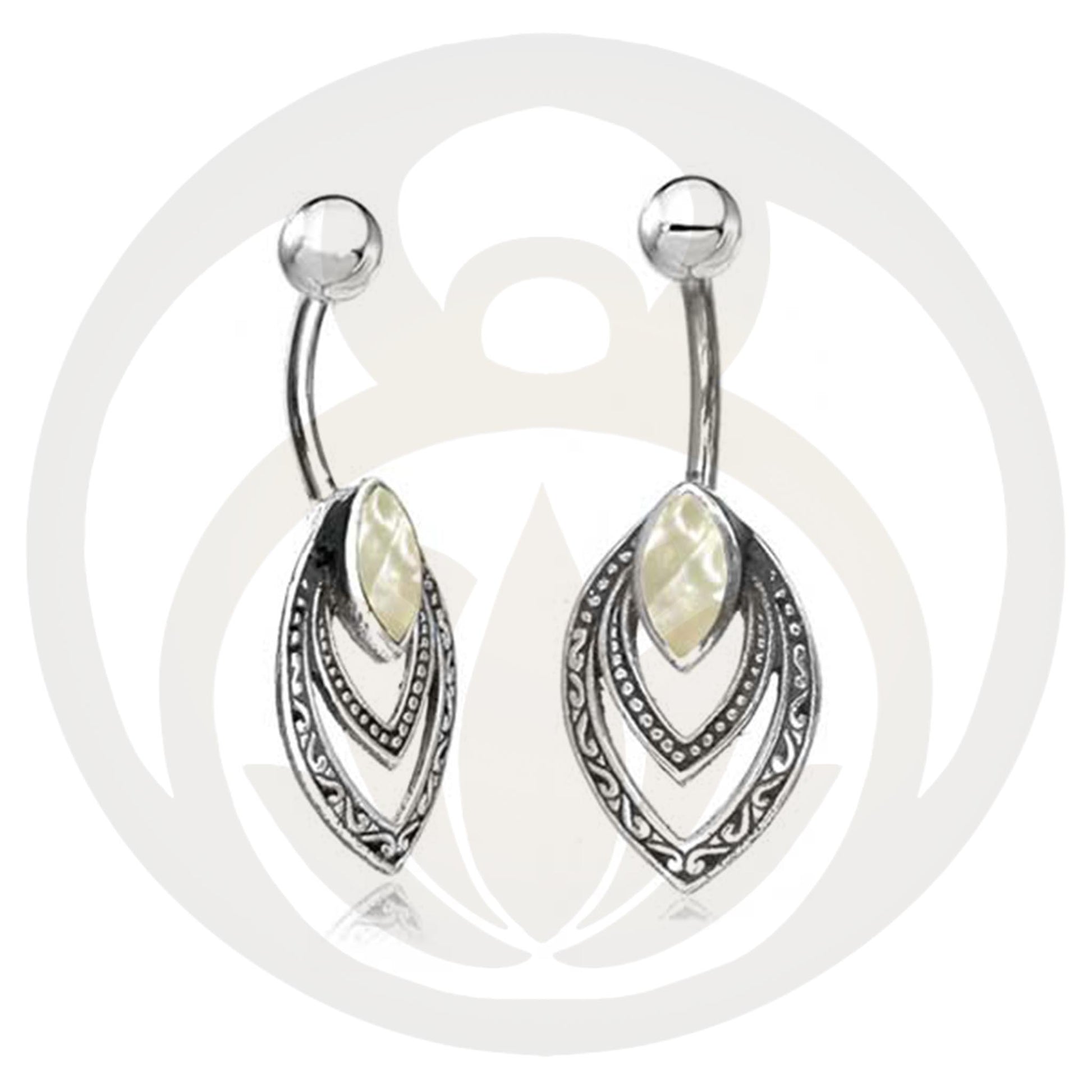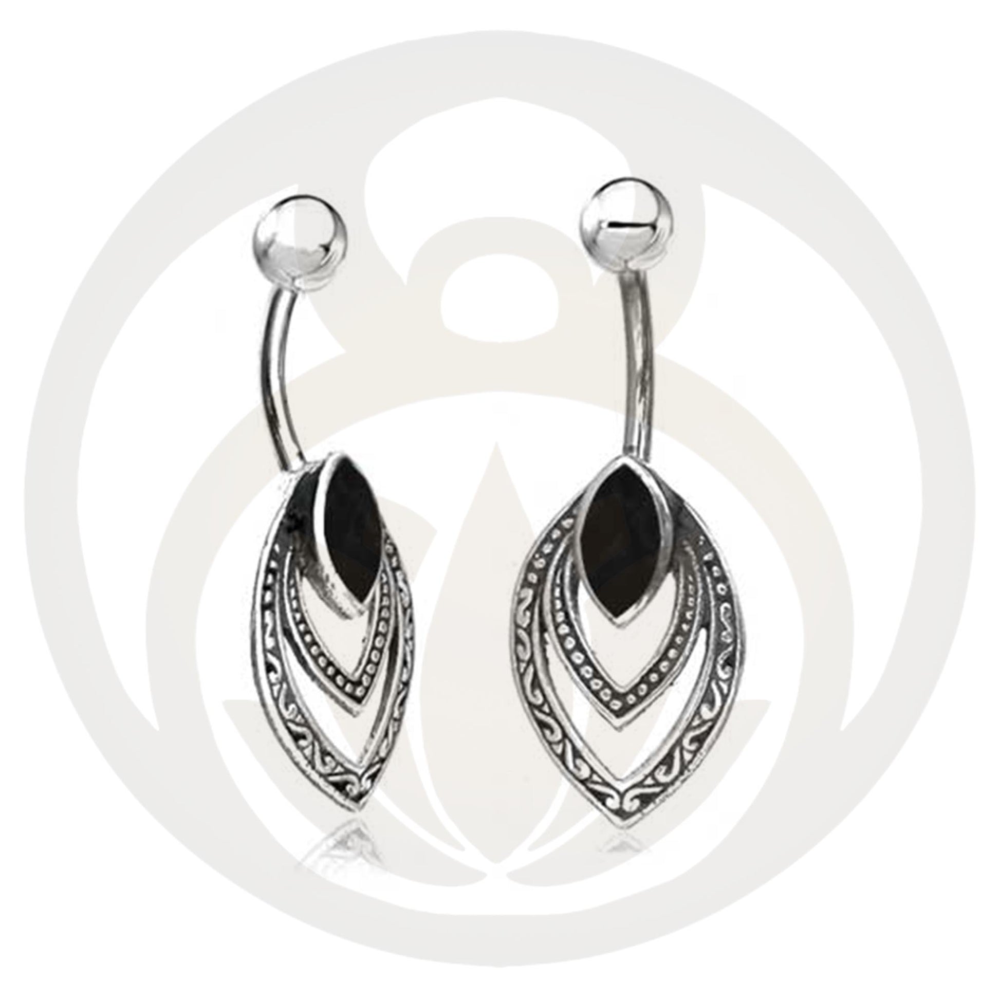 Joyas para el ombligo en filigrana con una piedra curativa en forma de lágrima, incorporada en dos finos mandalas puntiagudos con motivos celtas.