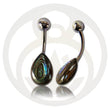 Joyas únicas para ombligo con abulón en forma de gota. El abulón promueve tu apertura y te ayuda a respetar tus límites. El piercing de ombligo boho es especialmente adecuado para canales de punción ligeramente más cortos.