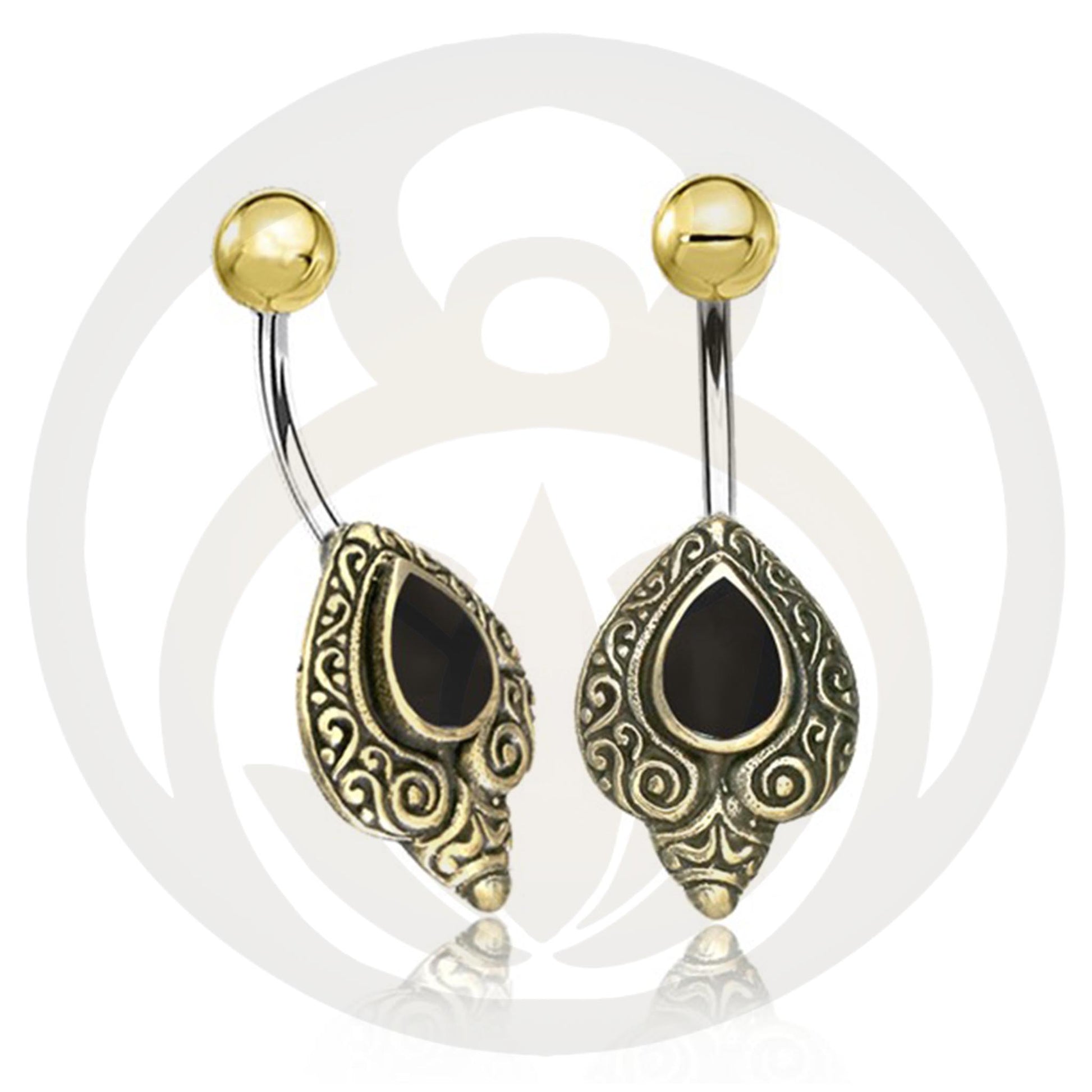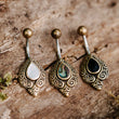 Exprese su individualidad con esta exclusiva joyería hippie para el ombligo. El mandala con motivos orientales contiene una piedra curativa en forma de gota que se supone que te acompañará y protegerá en tus próximas aventuras.